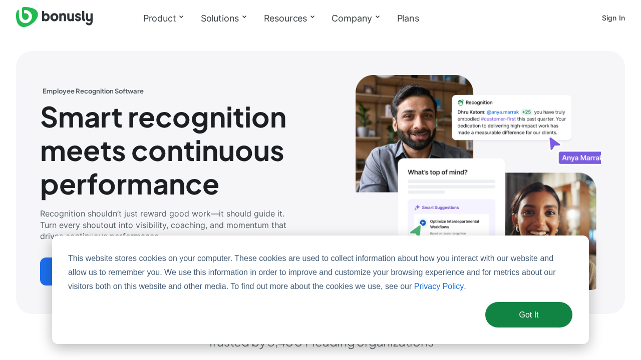 Bonusly is an employee recognition and rewards platform designed to foster engagement through peer-to-peer recognition, offering small bonuses tied to company values. Its goal is to celebrate employee milestones and contributions in real time using an extensive rewards catalog.