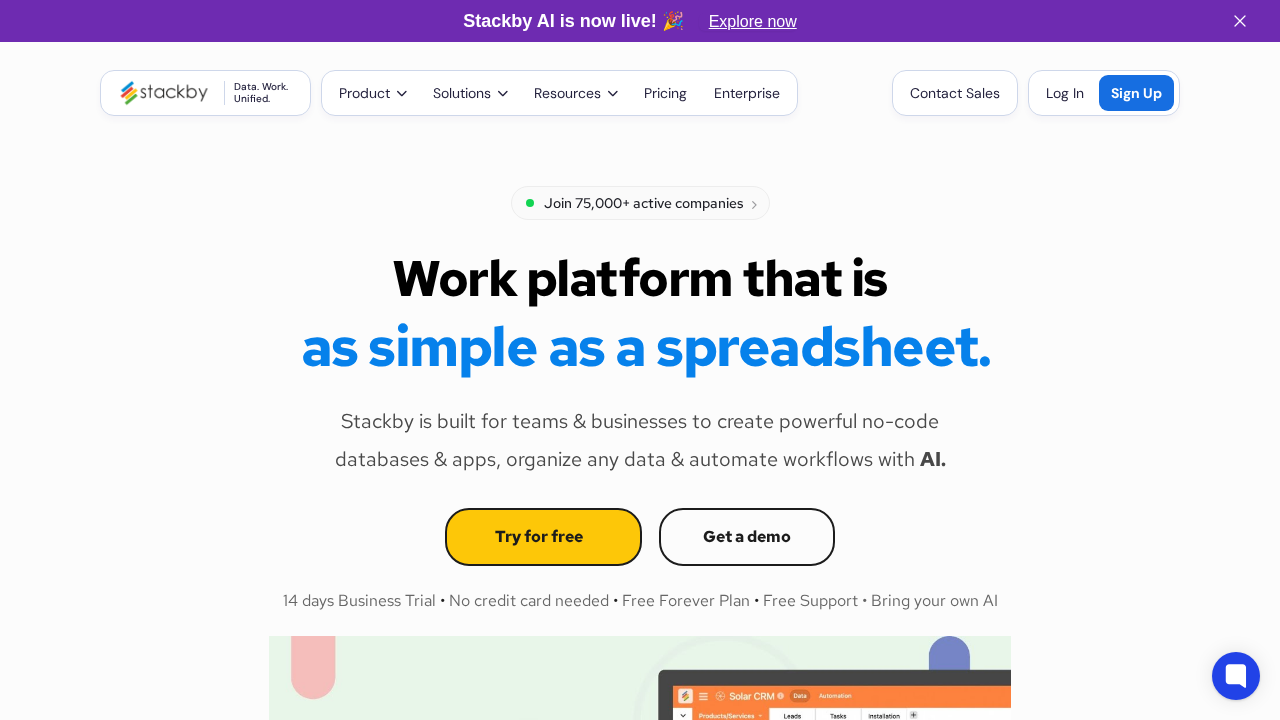 Stackby is a no-code online spreadsheet and database platform that allows teams and businesses to create custom workflows, manage data, and automate processes. It combines the simplicity of spreadsheets with the power of relational databases.
