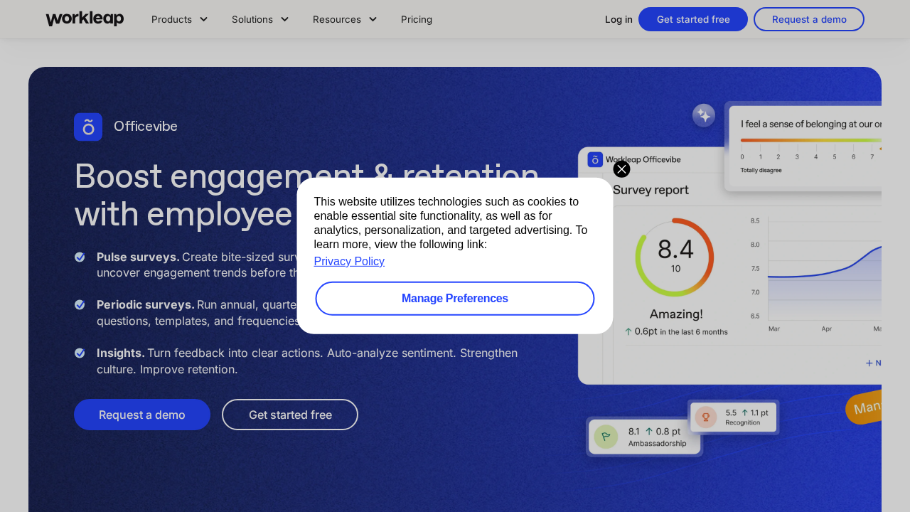 Officevibe is an employee engagement platform designed to gather continuous feedback, run surveys, and offer insights to improve workplace engagement and satisfaction. Its primary functionality revolves around pulse surveys, anonymous feedback collection, and AI-driven engagement analysis.